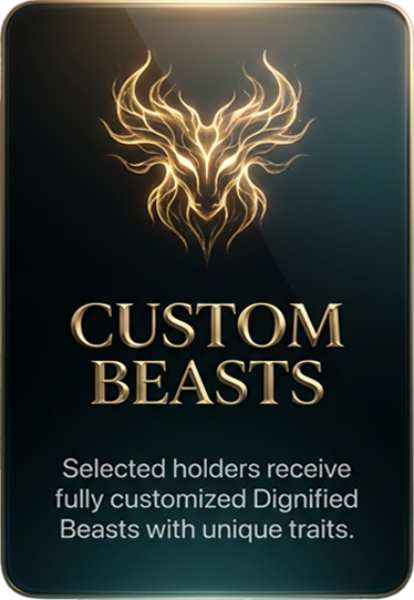 Dignified Beasts is a premium NFT collection built around a hierarchy of power, rarity, and evolution. Each Beast is uniquely designed and exists within a structured system that unlocks rewards, access, and future opportunities.
